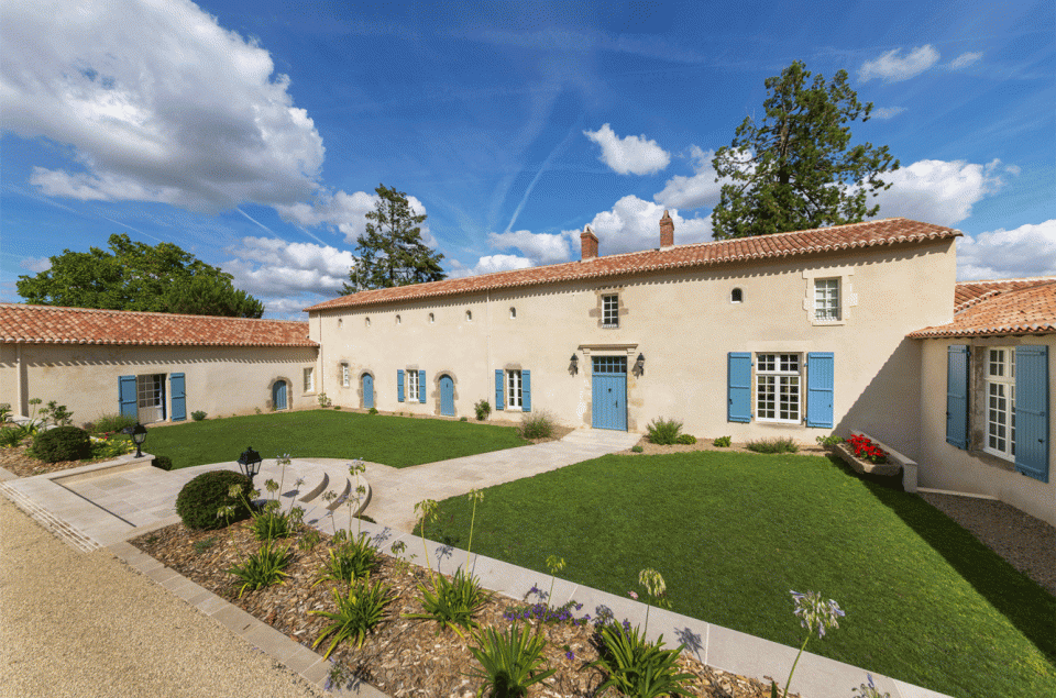 L’ancien logis du Bois Buzin a fait l’objet d’une restauration et d’un réaménagement intérieur. L’enduit à la chaux pour l’ensemble du corps du bâtiment ainsi que la couverture en tuiles permet de conserver un vocabulaire architectural traditionnel. Les menuiseries extérieures sont en bois peint. Réfection des sols et de la cheminée, création d’une cuisine avec plan de travail. Création de chambres et salles d’eau à l’étage. Création d’une piscine extérieure.